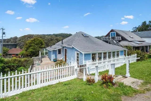 Vintage Albion cottage overlooking the Albion River. Built in 1916, this charming California bungalow has old world charm and is conveniently located in the heart of the village. One bedroom and one bathroom, with a bonus room that could serve as another sleeping area, home office or studio space. The light filled interior is kept cozy with an efficient monitor heater and passive solar from the south facing wall of windows. Enjoy the wind protected view overlooking the village and Albion River on the large wrap around deck. Just a short stroll to the market, post office, and hardware store or a few minutes by car to beaches, restaurants and shops. A fully redesigned and rebuilt septic system and community water add to the appeal. Short term rental potential, or keep it all to yourself - this is an ideal coastal getaway!
