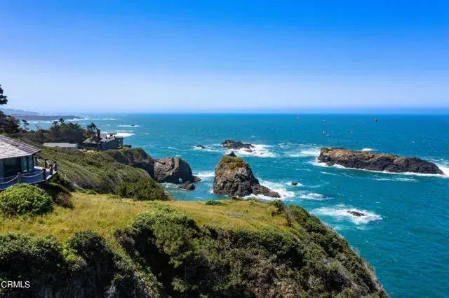 Two private, secluded oceanfront parcels are offered as one spectacular site on the Mendocino Coast. The first of the two parcels has sweeping views of the ocean, the coastline, sea caves and a cove below. The adjacent parcel has ocean vistas, beautiful, mature trees and lush vegetation and flora. Existing, partially completed structures offer a canvas for creating the house, guest house and studio of your dreams. Located less than 10 minutes from the Little River airport and the village of Mendocino.