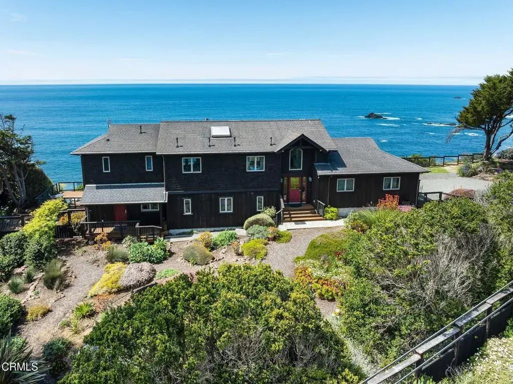 Presenting a modern home on the bluffs overlooking the ocean with private hot tub & three gas fireplaces. This two-story home offers unobstructed panoramic views of the Pacific. The main open living area features standout architecture with high-quality materials and superior craftsmanship as seen by handmade staircases, wood-paneled ceilings and exposed trusses. Natural light and 180 degrees of ocean views flow in through a row of picture windows. The full kitchen is equipped with a Dacor gas cooktop, double Dacor ovens, and a Sub-Zero refrigerator and freezer. Indulge in the luxury of this notable ocean getaway just minutes from the unspoiled seaside town of Elk. Enjoy spectacular whitewater ocean views while you soak in the private outdoor hot tub on the spacious deck. The terrace that overlooks the blue Pacific is also an excellent spot for sunning or enjoying an alfresco meal. You are less than two miles from a two-star Michelin restaurant, the Harbor House. The two downstairs bedrooms have their own kitchenettes, perfect for midnight snacks or sunrise coffee. All the bedrooms boast direct outdoor access. For work or entertainment at home high-speed internet is available with mesh WiFi for seamless telecommuting.