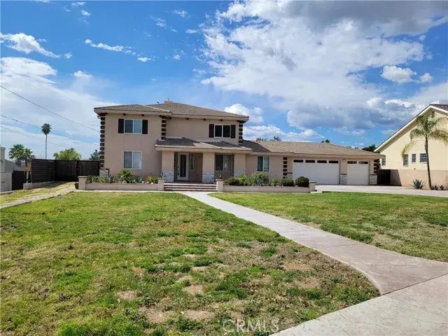 Large front yard, plenty of extra parking. Tiled entryway leading to the stairs, hallway to bedrooms, and living room. Just off the living room is a front bonus room that can be suited to your needs. The tiled dining area is just off the kitchen and includes a built in fireplace with additional counter space and storage, with French doors leading to the large covered back patio and enormous back yard. The kitchen has plenty of space to move around as well as plenty of storage that includes a pantry with a decorative glass door. The downstairs rear bedroom opens to the back yard and patio, and also comes with a walk in closet and ensuite with a large tub and glass walled walk in shower. The laundry room is located downstairs on your way to the 3 car attached garage, right next to an additional bathroom. Upstairs there are 3 bedrooms. The rear bedroom upstairs comes with a walk in closet, connected bathroom, and a connected bonus room. The upstairs also includes a front bedroom with a connected full bathroom and laundry room.