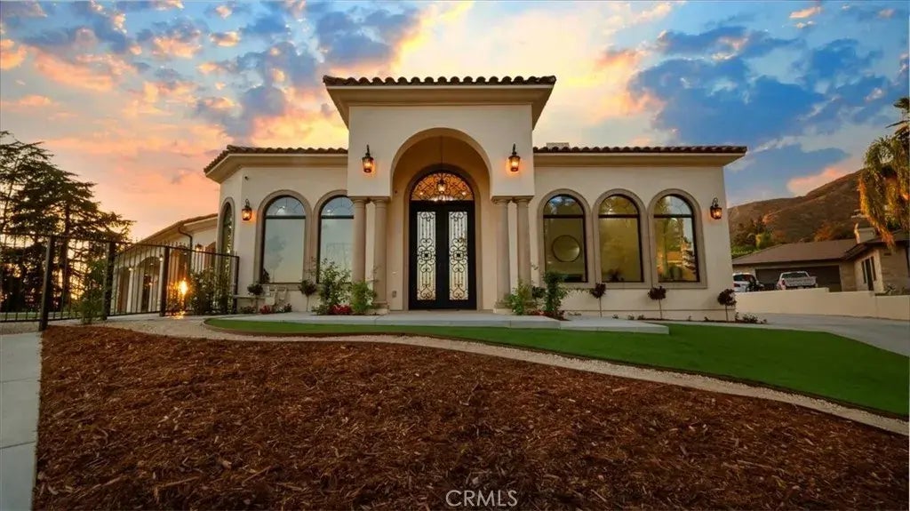 This brand new, just completed, ultra custom home is now available to be shown. This home was designed to showcase the classic features of traditional Mediterranean architecture, while incorporating a modern, contemporary interior where you will find the perfect melding of classic style as well as, current design & features. The curved contours of the architecture reflect the classic Mediterranean Revival style, boasting arches & designer details that provide contemporary glamour as well as beauty & sophistication to this masterpiece. As you approach this home you will be delighted by the 12 foot high double, ornamental door that opens to the 14 foot ceilings and arched windows on the interior. The views of the valley and mountains are amazing! It is highly unusual to find these views in a single level property. This home is approximately 5,200 square feet. It offers four large, ensuite bedrooms & six baths. The formal living and dining rooms are ideal for hosting special occasions and holiday entertaining. The kitchen is a chef's dream. There is a full suite of professional grade Thermador appliances that make meal prep a breeze. The breakfast bar is perfect for casual dining. The kitchen is open to a huge great room that incorporates a casual dining space, a cozy fireplace and wet bar. The perfect place to entertain family and friends. This space also has doors that when opened, disappear allowing for full access to the approximately 1,730 sq. ft. of outdoor living area. The loggia is huge and overlooks the sparkling pool and spa, as well as the putting green, and of cour
