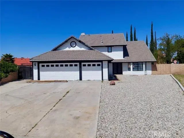 Welcome to this newly renovated 2,081 sqft home featuring two stories and a spacious backyard with a lot size of 11,781 sqft. Every black and white fixture and feature has been meticulously selected and renovated to radiate luxury, elegance, and a modern finish throughout the home. Upon entering the main floor you are greeted with the living room, dining room, kitchen, family room with fireplace, sliding doors leading to the backyard, one bedroom, a full bathroom, laundry room, 3-car garage, and a small storage space under the stairs. As you take the stairs to the second floor, you will find a midway counter and cabinet space bathed in natural light from nearby windows. At the top, directly in front of the stairs will be the entrance to the primary bedroom featuring a balcony overlooking the backyard, full bathroom with double sinks, and walk-in closet. Continuing down the hallway will be 2 bedrooms, a full bathroom, and an indoor balcony that offers a view of the living room below. This is the perfect home for anyone looking for privacy, safety, and a new quality of life in the city of Palmdale. Come and see it for yourself!