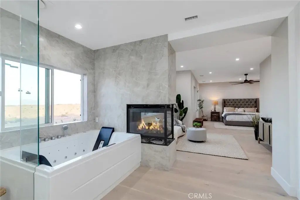 PRICE REDUCTION!!! PRICE REDUCTION!!! For directions use address **10830 Emerson Road, Oak Hills, CA 92344**SOLAR PANELS NEW PRICE!!!Discover the Pinnacle of Luxury Living in Oak Hills** Step into a world of unparalleled elegance with this newly constructed masterpiece perched atop a serene hilltop, offering breathtaking views from every angle. This extraordinary home features a grand four-car garage with soaring ceilings and tall doors, perfect for all your recreational vehicles, Garage is Complete with a convenient bathroom and shower, its more than just a garageit's a haven for your hobbies. The journey begins at the fabulous entryway, where a colossal pivot door welcomes you into an opulent interior adorned with matching chandeliers. The state-of-the-art kitchen, equipped with Smart matching stainless steel appliances, is a culinary artist's dream. Luxurious leather-fade marble stone flows throughout the home, enhancing the aesthetic appeal. Enjoy seamless entertainment with a built-in speaker system that fills every room with your favorite tunes. The expansive separate laundry room adds a touch of practicality to the grandeur. Retreat to the lavish master en suite, featuring a spa tub and a marble walk-in shower with smart faucet connections. His and her closets offer ample space and sophistication. Each of the three additional bedrooms boasts private baths and smart appliances, ensuring convenience and comfort for every member of the household. Smart lighting throughout the house creates an ambiance tailored to your mood. This home isn't just a residence; it's a lifes