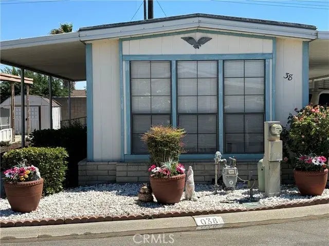 This charming two bed one bath home is located in the desirable Ramrod senior community. Enter into the cozy living room open to the spacious kitchen. The kitchen is the heart of the home with upgraded cabinets and beautiful stone counter tops. The home offers wood laminate floors in the kitchen,living room, bathroom and hall. The master bedroom is your relaxing retreat. The secondary room can be a office, yoga retreat or additional bedroom.The laundry area is conveniently located in the hall with linen cabinets above the washer and dryer. The hall bath includes a stylish vanity and walk in shower. Keep cool with the new AC and for those chilly nights enjoy the new heater both a real plus. The newer carport accommodates two parking spaces. In the rear yard is a spacious shed. The space rent is very reasonable. The park offers many amenities including a club house, pool, bingo and much more a great place to call home! Close to the 210 freeway, Renaissance Market place, restaurants, movie theater and much more! A perfect blend of wonderful!
