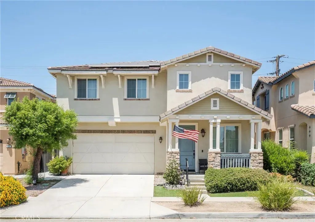 UPGRADED 5 BEDROOM IN GATED COMMUNITY OF HARVEST W/ DOWNSTAIRS BEDROOM! Built by Beazer 2013, this incredible home is the best priced 5 bedroom home in all of Rancho Cucamonga! Paid off solar panels drive down the power bill which averages about $55/m! Water, power & gas for the month are around $300! Oh and let's not forget the sensationally low property tax rate of approx 1.1%!!! This home is very inexpensive on a monthly basis! The floor plan is phenomenal! Upon entry, the formal living room boasts soaring valuted ceilings, tons of natural light and it flows perfectly into the dining area. New water resistant laminate flooring and baseboards were just installed and can be found throughout the first floor. The open concept island kitchen & family room is such a great space. The kitchen offers refinished white shaker cabinets, granite countertops, recessed lighting and a new stainless steel stove. There is a downstairs bedroom and full bathroom. Upstairs you'll find a loft and the additional 4 bedrooms. The secondary bedrooms area all spacious! The primary suite is truly a show stopper! The room is not only a great size, but there's also an additional retreat in between the main room and the primary bath. The walk-in closet is massive. The backyard is low maintenance but still offers a space to grill and unwind. Other upgrades to note: 1 year old tankless water heater, New LED lights throughout, low water bill. The community features include a playground and pool! HOA covers upkeep of pool, playground, common areas and gate. All of this is conveniently located within a sho