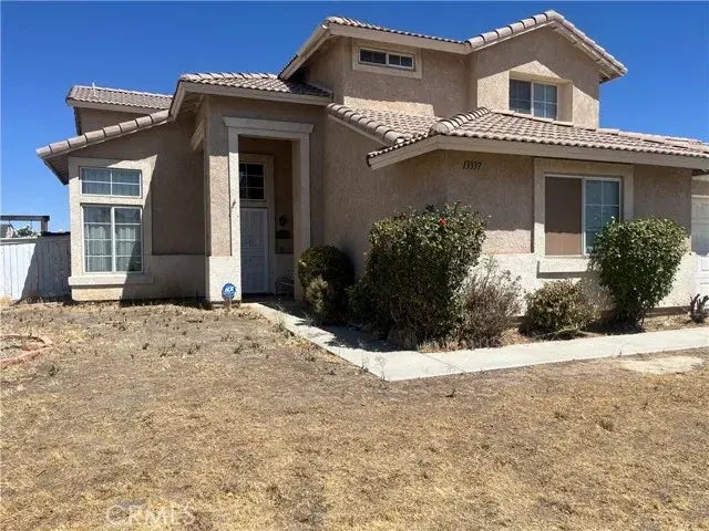 Beautiful 4 bed / 3 bath pool home located in a quiet cul-de-sac neighborhood of Victorville. Youll notice a nice and open floorplan, where the home has Kitchen granite counters and resurfaced cabinets. Home features a formal living and dinning and a nice fireplace for colder evenings. The single family residence has 1 bedroom and full bath downstairs with French doors that lead to the back yard. All other bedrooms are located on 2nd level. The master bedroom has a balcony with a beautiful view. Property has laminate and tile flooring throughout. Great property. Priced just right. Wont last long.