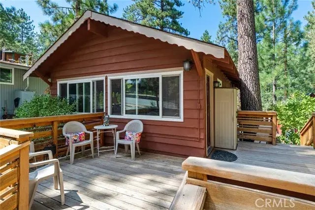 Huge reduction! Low price on Mountain for the fabulous condition of home. 1 bedroom can easily be converted back to 2 bedrooms by the buyer. This wonderful Wrightwood cabin is open and bright. The knotty pine thought out the home gives it the warm and cozy cabin feel. The floor plan is open and feels well beyond its square footage. The one bedroom is huge. There is a wood burning stove for the chilly winter nights and newer windows thought out for insulation. The kitchen was re done sometime before purchase and the white shaker cabinets look great against the knotty pine wood. The laundry is inside and the bathroom is spacious. The front deck is wonderful for sitting and enjoying the fabulous view of the mountains and all that Wrightwood has to offer you. Within walking distance of the village and about 10 Min. drive from Mountain High. Located 10 Min from Highway 138 this community has so much to offer. This cabin is just adorable and ready for someone to call it home!