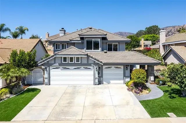 BEAUTIFUL FOUR-BEDROOM CUL-DE-SAC POOL HOME IN A COVETED NORTH LA VERNE NEIGHBORHOOD! NO HOA! Attractive, low-maintenance landscaping and a serene covered tiled walkway and entry welcome you to this stunning home. The front door with leaded glass opens to the formal entry overlooking the stylish modern stairway, and the light and bright living room & dining room with its soaring two-story cathedral ceiling. A gorgeous leaded glass arched window compliments the dining room. The kitchen is open to the eating area & the family room and features an abundance of cabinets with slide-out shelves, beautiful granite countertops, black appliances, and an island with a 36 Wolf electric cooktop. Enjoy beautiful backyard views from the expansive window above the kitchen sink area. Relax & entertain in the family room with its stacked stone fireplace, and wet bar with granite countertop. A bedroom/office, a remodeled full bathroom, and a large indoor laundry room with direct access to the 3-car garage complete the downstairs. Upstairs, there are 3 bedrooms and two full bathrooms. The primary bedroom feels spacious with its cathedral ceiling and features built-in cabinets for entertainment devices as well as dresser/closet space. The luxurious primary bathroom showcases a walk-in closet, dual sinks with granite countertop & glass tile backsplash, and a separate shower and soaking tub boasting glass tiles. Additional features of this lovely home include wood-look tile flooring downstairs, recessed lighting, Milgard Low-E dual pane windows & sliding doors, ADT security system, whole house f