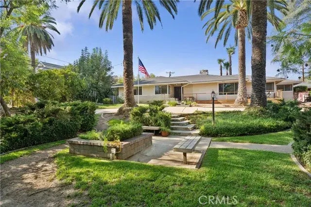 (See VIRTUAL LINK)...Imagine when this CUSTOM BUILT HOME was designed by the first owners in 1964 who might have been sitting around the TV watching "The Addams Family" that debuted that same year or could have drove to the nearest theater to see the popular films of its time: "Mary Poppins" and "My Fair Lady". One can still experience the integrity of this home w/ PEACE & TRANQUILTY providing PRIVACY w/ the GATED ACCESS to the CIRCULAR DRIVEWAY & PARK LIKE SETTING w/ lush trees offering shade that is most welcomed on those WARM SUNNY CALIFORNIA days of living. Or keep COOL in the OVERSIZED SPARKLING POOL in the back w/ the DIVING BOARD that was popular back then. ~~~ One can appreciate the way this home is laid out the moment you step inside. The DOUBLE DOORS (original to its year) offer design & space to the formal entry set off w/half wall to the ROOMY FORMAL LIVING ROOM w/HARD WOOD FLOORS, CORNER WINDOWS that overlook the park like front yard and BRICK FIREPLACE. There is a bonus room currently used as an office set between the living room and CASUAL DINING. ~~~ Straight from entry leads to the FORMAL DINING w/Recessed LED lighting, FIREPLACE and large SLIDERS to the WALL to WALL COVERED PATIO: perfect for enjoyment rain or shine. Continue from dining to the casual dining that is adjacent to the kitchen offering a stove top, double oven (one of the ovens is not functional), dishwasher & sink w/ window view of the backyard. Continue to the indoor laundry that is positioned to 2 of the 5 bedrooms & set near the 3/4 updated bath. A doorway takes it to the FAMILY ROOM w/SLI