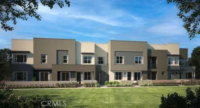 Eave, a vibrant collection of CA Modern courtyard townhomes designed for comfortable living in the open airy layout. This 3 bedroom, 2.5 bath and 2 car garage offers a modern design and stylish comfort. Endless Amenities: resort-style lap pool and kiddie pool, jacuzzi, half basketball court, passive park, dog park, children's playground, fire pit, BBQ and corn hole. Home ready for move in September 2024. California Modern exterior
