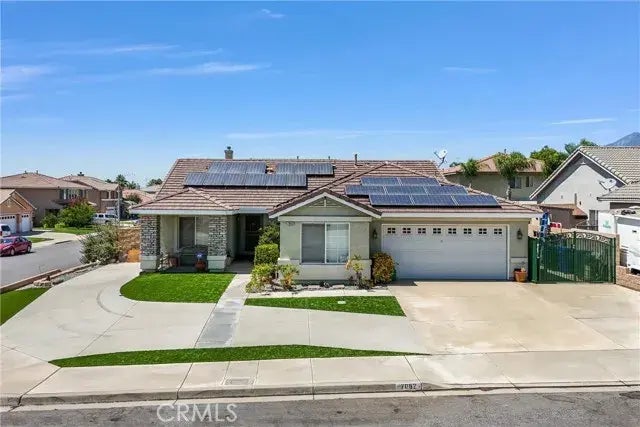 Single-Story Pool Home with RV Parking on a Large Corner Lot in North Fontana. Welcome to this spacious 4-bedroom home located in the highly sought-after Morning Side community of North Fontana, within the prestigious Etiwanda High School district. This single-story gem offers everything you've been searching for, including a private pool and spa, perfect for California living. The living room, complete with a cozy fireplace, flows seamlessly into the kitchen, which features an island, a breakfast bar, and an adjacent dining areaideal for entertaining. The primary bedroom boasts an ensuite bathroom with dual sinks, a soaking tub, a walk-in shower, and a walk-in closet, providing a perfect retreat at the end of the day. Three more spacious bedrooms offer ample space for family, guests, or a home office. The backyard is designed for entertaining, featuring two built-in bar/BBQ areas, a covered patio, and plenty of room to relax by the pool. Plus, the large, gated RV parking area is perfect for storing your toys. With a 52-panel solar system, you won't have to worry about high electricity bills. Conveniently located near the 15 and 210 freeways, and just minutes from Victoria Gardens and shopping, this home offers the perfect blend of comfort and convenience. Plus, theres no HOA!