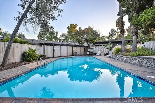 COVETED ALTA LOMA GARDENS MID-CENTURY LIVING. Single story condominium on a spacious private elevated lot. Tucked away in North Rancho Cucamonga, you will find Alta Loma Gardens, a small community that showcases the mid-century modern architecture. Enjoy a sun lit, light filled open concept floor plan with high vaulted wood beamed ceilings plus wall-to-wall glass picture windows and clear glass doors. Kitchen with eating counter opens to dining and family living rooms. Spacious indoor laundry room. Includes covered carport, a spacious walk-in storage room, plus plenty of guest parking. Newly updated plumbing, Newly updated electrical. Tranquil common grounds provide a community pool, giant mature trees, exotic plants, winding trails, wildlife, and more - Your own private oasis! Convenient to shopping, Trader Joe's, restaurants, transportation, and the 210 Freeway. Award winning Chaffey Unified School district. HOA dues include water and trash pick up for the condo.