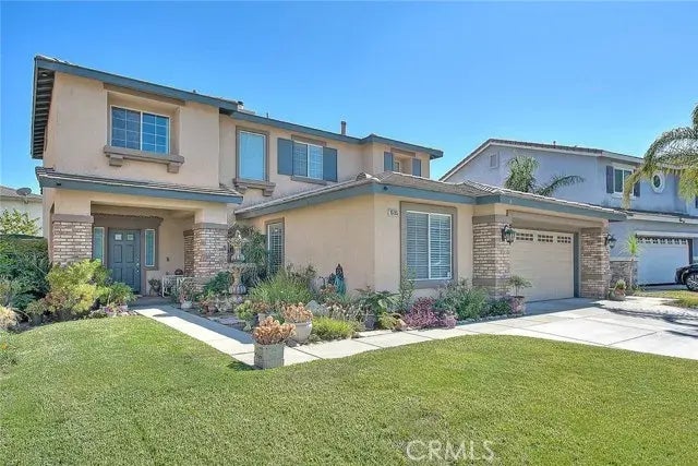 North Fontana 5 Bedroom home in the Summit Heights area! Come and see this home with a bubbling fountain out front great to relax and hear the water. Then come on in to view the New Larger Custom Kitchen designed with beautiful Quartz countertops! So many cabinets! Large Island with storage underneath and a walk in pantry. Newer Kitchen Appliances along with additional lighting added in the kitchen/family area. Newer wood-like Tile floors throughout the first level and a gas fireplace with a newer Anderson Slider. New Custom blinds throughout the home. Living Room has newer lighting over the formal dining area. Upstairs Loft and upstairs bathroom has Newer wood-like Tile flooring. All 5 Bedrooms have newer carpet with one bedroom being downstairs with a mirrored closet. Primary Bedroom is large and has a balcony. Primary Bathroom has completely been remodeled with a Newer Dual Sink Vanity and New larger shower with shaving shelf. Extra Lighting added in Primary Bathroom along with a vanity area. Large Primary Walk in closet with Newer Carpet. Ceiling fans throughout the home. Laundry inside. Backyard is a great place to enjoy or entertain with added concrete and a stone patio with small retaining walls. Garden area and lemon, apricot and peach trees. Extra concrete was added out front for more driveway parking if needed. Close to shopping and 210/15 freeways. Located in the Etiwanda school district.