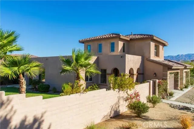 MAIN LEVEL LUXURIOUS PRIMARY SUITE! This pristine home offers modern living at its finest with a spacious, open floor plan thats perfect for entertaining. The kitchen boasts stainless steel appliances, plentiful cabinetry, sleek granite countertops, and a large island with a breakfast bar, all seamlessly flowing into the dining and cozy living areas. Designer style tile flooring in public spaces, and newer flooring installed in the bedrooms and staircase. recessed lighting, and abundance of natural light throughout. Retreat to the main level primary suite, featuring a spa-like bathroom complete with an oversized walk-in shower, dual sink vanity, and private restroom. Upstairs offers a LOFT, two bedrooms with Jack and Jill bathroom. Additional highlights include an expansive BEAUTIFULLY LANDSCAPED lot that provides ample space for a private pool. Enjoy the community amenities including a fitness center, pool and spa, outdoor BBQ areas, dog parks, and scenic walking paths, all Conveniently located near schools, shopping areas, the new Acrisure Arena, the I-10 freeway and approx. 20 mins away from Palm Springs Airport. *** LOW HOA & YOU OWN THE LAND! ***