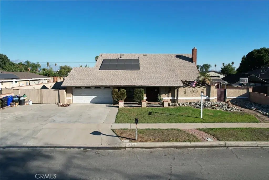 Welcome to your new haven in Rialto! Low Tax, No HOA! This delightful two-story home offers a perfect blend of comfort and convenience. Step inside to discover a bright, inviting living area, ideal for entertaining or cozy nights. The updated kitchen boasts ample counter space and modern appliances, making meal prep a breeze. Enjoy meals in the adjacent dining area, or step outside to the private backyard oasis, complete with a patio for dining and plenty of space for gardening or play. Two spacious bedrooms on the main floor, including one currently set up as a cozy office. 3 bedrooms Upstairs, the primary suite boasts a generous walk-in closet, two additional wall closets, and a luxurious en-suite bathroom featuring a soaking tub and separate shower. French doors lead to a brand-new oversized balcony patio, perfect for morning coffee or sunsets. Dive into the sparkling pool or relax in the lush grass area. The backyard also features exterior storage cabinets, a charming dollhouse, and RV parking. Enjoy a back carport cover, a 2-car garage, and a 4-car driveway. Equipped with solar panels, this home offers energy efficiency and savings. Located in a quiet area, perfect for families seeking a welcoming community neighborhood with easy access to local parks, schools, and shopping, and 210 Fwy. Minutes away from 15 & 215 Fwy, 3 minutes from Renaissance Shopping Center in Rialto. 15 minutes from Victoria Gardens, Ontario Mills, and Ontario Airport.