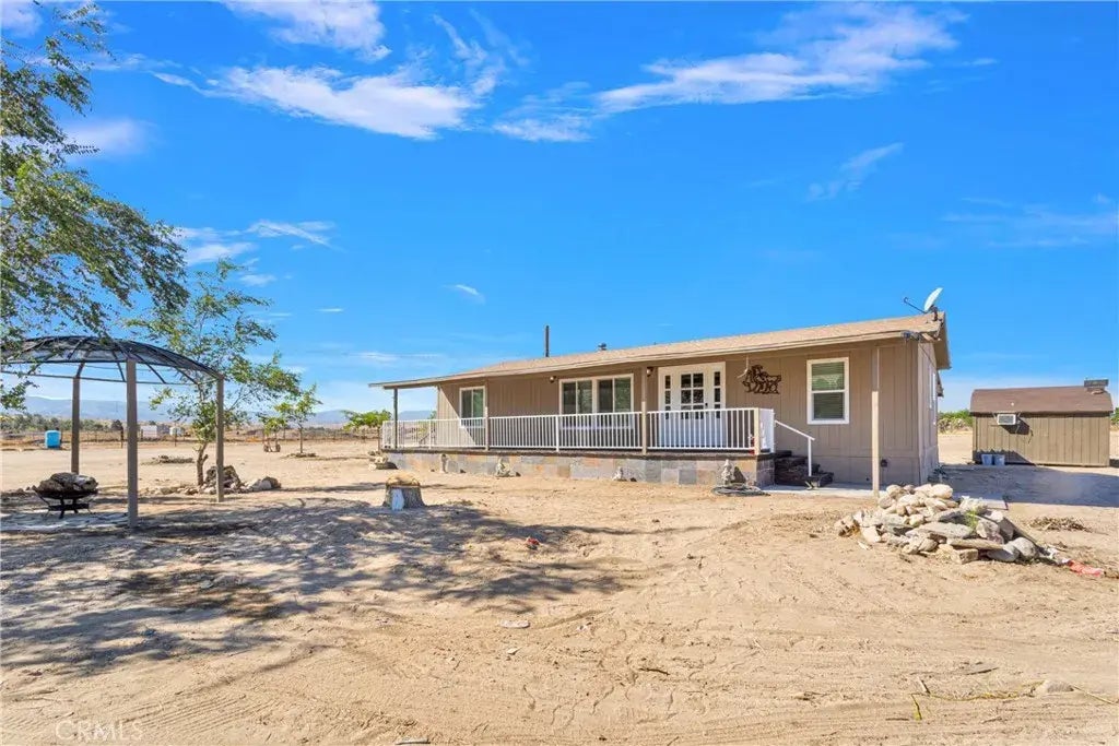 Welcome to 19970 Medford Way, 2 ACRES of land with a stunning 3 bed, 2 bath FULLY REMODELED manufactured home in Apple Valley, CA, perfectly located at the base of the foothills with breathtaking 360-degree VIEWS. Built in 1989, features a modern kitchen with brand-new cabinets and appliances, updated fixtures, recessed lighting, and sleek ceiling fans, indoor laundry room. Both bathrooms boast contemporary updates, including a luxury bidet. Enjoy your morning coffee on the large front porch and host barbecues on the back covered patio while savoring gorgeous desert sunsets. AT the foothills of the mountains you are on flat, fully fenced HORSE PROPERTY with multiple storage sheds. This lot is perfect for landscaping, a pool, or storing your toys to easily access all of the close by outdoor adventures. Plus, if your looking for off-grid living this property is ready with propane and well water, just add solar! Dont miss your chanceschedule a showing now and make this desert oasis your own!