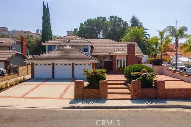 Perfect family home in the wonderful city of Diamond Bar! This stunning 5-bedroom, 3-bathroom residence offers 2,984 sq ft of luxurious living space all situated on a spacious nearly 13,900 sq ft lot. The home has been recently updated with new plumbing, paint, carpet, laminate flooring and recessed lighting. The front yard has extensive brick work with planters flanking the steps leading to the front door. Double door entry leads into an impressive living room and formal dining room with vaulted ceilings. The kitchen opens up to the eating area, family room and bar that is perfect for entertaining. There is a downstairs bedroom adjacent to a full bathroom located next to the laundry room with cabinets and sink. Upstairs there are a total of four bedrooms and two bathrooms including the grand primary bedroom with vaulted ceilings, enormous bathroom and two closets. Two sliding doors open out to a gorgeous, private backyard with no neighbors directly behind. Currently it is designed as a low maintenance and relaxing retreat with mostly concrete flatwork and mature, majestic king palms. This yard gives you the space to add a dream pool, an ADU, or sporting area such as basketball half court or batting cage. There is a long easement that runs parallel to the property offering additional parking and access to the backyard. Walking distance to both elementary and middle schools. LOW TAXES AND NO HOA!!! Easy access to shopping, restaurants, and the 60 and 57 freeways making it conveniently located to both Los Angeles County and Orange County. With minor updates, you can transform