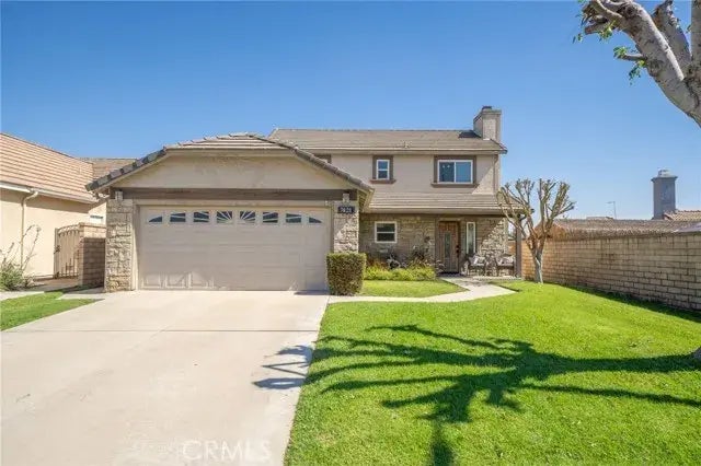 Welcome to 7421 Aurora Pl, a charming two-story home nestled in one of Rancho Cucamonga's most desirable neighborhoods. This beautiful residence offers 3 bedrooms, 2.5 bathrooms, and 1,605 square feet of living space, blending comfort, style and convenience. As you arrive, youll be captivated by its inviting curb appeal, complete with a stone-accented faade, a large driveway, and a cozy front patio. Inside, youll find a spacious, light-filled interior with upgraded wood-style flooring that flows throughout the home, creating a warm and welcoming atmosphere. The open-concept living and dining areas feature recessed lighting and tasteful finishes, with a cozy fireplace in the living room thats perfect for relaxing on cool evenings. Adjacent to the dining area, the upgraded kitchen shines with sleek quartz countertops, a subway tile backsplash, and grey cabinetry, providing ample storage. Stainless steel appliances and modern fixtures complete this stylish and functional space, making it a joy for both cooking and entertaining. The kitchen seamlessness flows into the family room, where you can enjoy relaxing and watching TV. Upstairs, the primary bedroom offers a peaceful retreat with vaulted ceilings, a ceiling fan and large mirrored closet doors. The en-suite bathroom exudes a spa-like feel, featuring a beautifully tiled walk-in shower, a sleek black vanity, and modern fixtures. The additional bedrooms are generously sized, each with ample closet space, and share a well-appointed full bathroom. A convenient half-bath is located on the main floor for guests, and a dedicated l