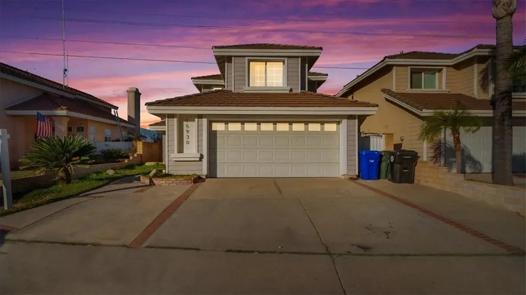 Welcome to this 2-story home at the picturesque base of the Jurupra Hills in the community of Southridge in Fontana! It features an open floor plan with 4 bedrooms and 3 baths, including a convenient first-floor bedroom and bathroom. The bright and airy, the living and dining areas boast high ceilings and large windows. The modern kitchen includes elegant quartz countertops, recessed lighting and newer appliances. Enjoy a cozy family room with fireplace. Feel confident for cool summers with a newer energy efficient AC unit. Enjoy a soft water filtration and system and 2 year old water heater. Experience additional privacy in your backyard with no rear neighbors and the convenience of a wrap-around cement patio, perfect for entertaining.