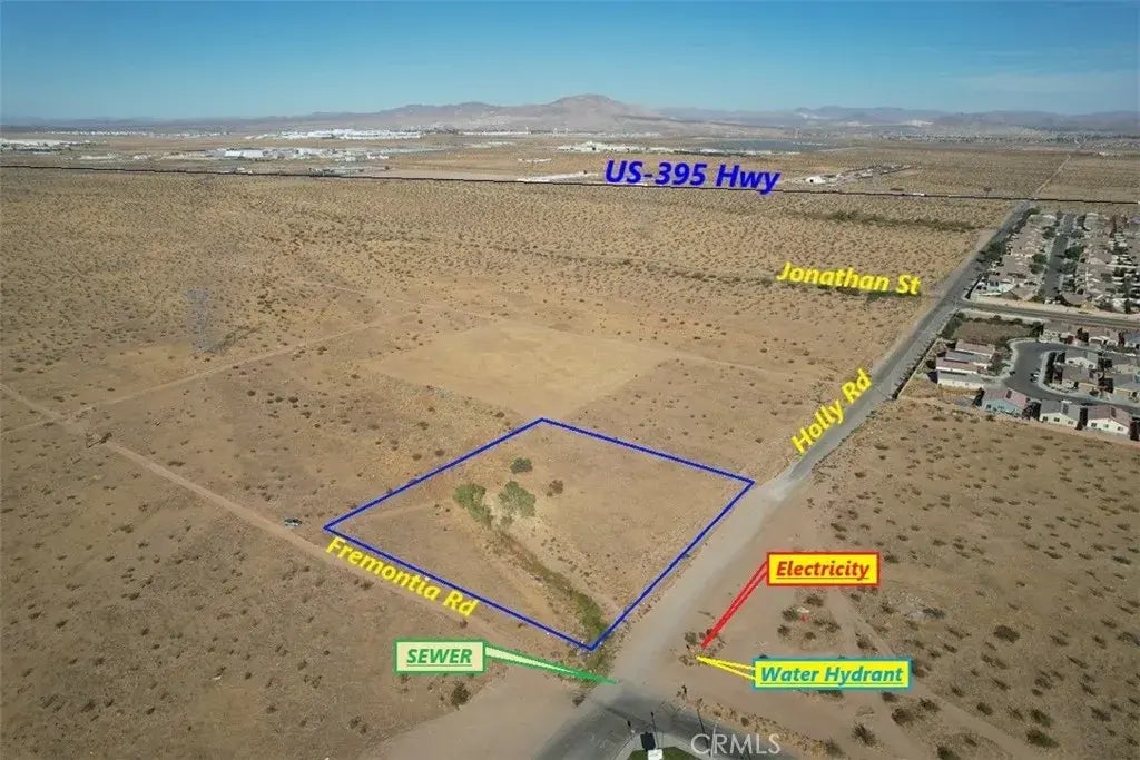 **Exceptional Location and Prime Investment Opportunity! ** SELLER WILL FINANCE WITH 50% DOWN, 1-3 YEAR FINANCE, AMORTIZED MONTHLY PAYMENTS. Discover an incredible chance to own a beautiful 2-acre parcel of land in the sought-after City of Adelanto, CA. This property boasts a clean, flat terrain, making it ideal for a variety of potential developments. According to municipal zoning regulations, the land is designated as family residential (R-S5). This zoning allows for the construction of detached single-family homes, with the potential to accommodate up to five (5) residential units per gross acre. This makes it a fantastic investment for developers or individuals looking to create their dream home or multiple residences. Utilities are conveniently accessible, with electricity, water, and sewer services available on the street on Holly Rd. Additionally ensuring direct access to utilities, which enhances its appeal for future development. conveniently located on the northwest corner adjacent to Victoria Magathan Elementary School, this site is perfect for families seeking proximity to educational facilities. The property is situated approximately 3,000 +/- feet, or 0.6 miles west of Highway 395, offering easy connectivity to major routes and nearby amenities. Please be aware that the dotted lines shown in the accompanying images are merely estimates and do not depict the precise boundaries of the property. It is highly recommended that prospective buyers conduct thorough due diligence to determine exact property lines, utility connections, and any associated costs, for your