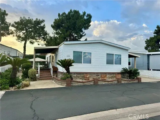 Stop!!! Dont miss out on this great opportunity to own this spacious doublewide home located in the Casa Volante Estates! Easy to find this spacious home with plenty of living space that includes a living room with New privacy blinds with high ceiling and beams, upgraded Vinyl windows throughout, a dining room with built in china cabinets, 2 bedrooms that are attached to its own separate full bathrooms, Kitchen includes tile backsplash, plenty of cabinets with ample storage, refrigerator, slide in gas stove, dishwasher with built in breakfast counter! Large covered front porch and large area to entertain family and friends with a built in BBQ, new updated additions included: new roof, newer exterior life time siding and AC unit. A large covered car port for 2 with additional storage shed. Sold as-is. All this and more Close to shopping, restaurants. Hurry this one wont last!
