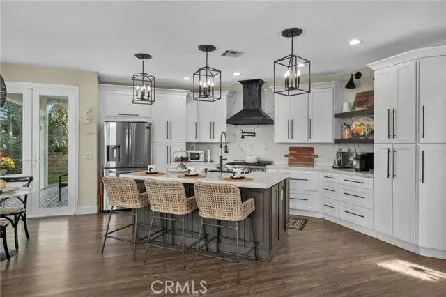This stunning home offers 5 bedrooms and 3 full bathrooms, with an expansive and open floor plan. The newly remodeled kitchen is a chef's dream with all new stainless steel appliances, an extra large sink, and a pot filler for your convenience. The Quartz counter top and Quartz backsplash along with the hardware and light fixtures give a stylish and modern touch that would be appealing to any homeowner. The open floor plan flows from the kitchen into the family room where you will enjoy a wonderful fireplace and views of the spectacular backyard. This home is move in ready with updated floors, recently painted inside and outside, and custom window coverings. There is also a bedroom and full bathroom downstairs that would be convenient for guests, a mother-in-law suite or a dedicated office. The backyard is truly a Staycation Oasis complete with a large pool, Jacuzzi, fruit trees and an outdoor kitchen, as well as space for an A.D.U. There is also possible R.V. parking and a spacious 3 car garage. This fabulous home is ideal with a Low Tax rate, and NO HOA. The schools are highly rated, and there is easy access to freeways, shopping, and only a 45 min drive to Disney. This home will give you the life style that you deserve in a tranquil community of Rancho. Take a better look at the home by watching the virtual tour!