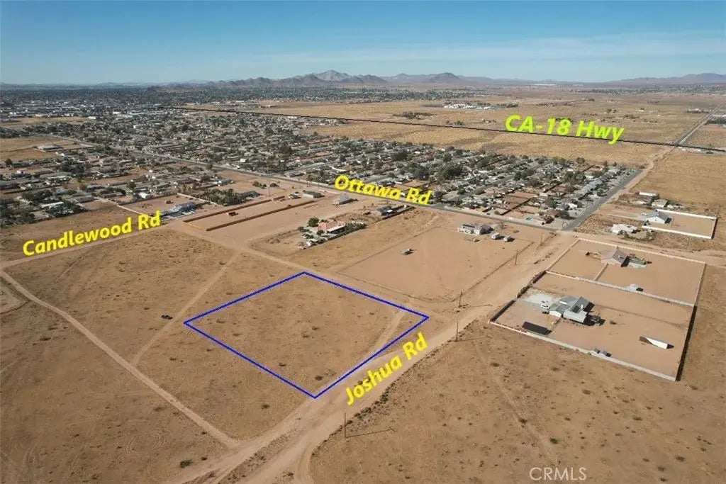 2.74-acre flat and buildable land is situated in a beautiful location in Apple Valley, just 600ft from paved Ottawa Rd and 0.6 miles south of CA-18 Hwy. Electricity, gas, cable are available on the street, water nearby, and the property is located to the southwest corner of to the following property address: 13225 Joshua Rd, Apple Valley, CA 92308. Zoned (R-SF) Single Family Residential (1du/0.4 to 0.9 net acre), there is an unnamed mapped street on the north side of the property. The area boasts breathtaking mountain views, making it a growing and developing community. It's conveniently close to various amenities like convenience stores and several restaurants. The APN for this property is: 0439-421-06-0000, and the Google Maps coordinates to the sign on the property are 34.491250, -117.155444, Interested buyers are encouraged to make an offer soon, as properties like this tend to move quickly. Please note that the boundaries are approximate and not surveyed, so it's essential for the buyer and buyers agent to verify utilities, zoning, planning, and exact boundary lines. We are excited about the opportunity to work with you on this beautiful property.