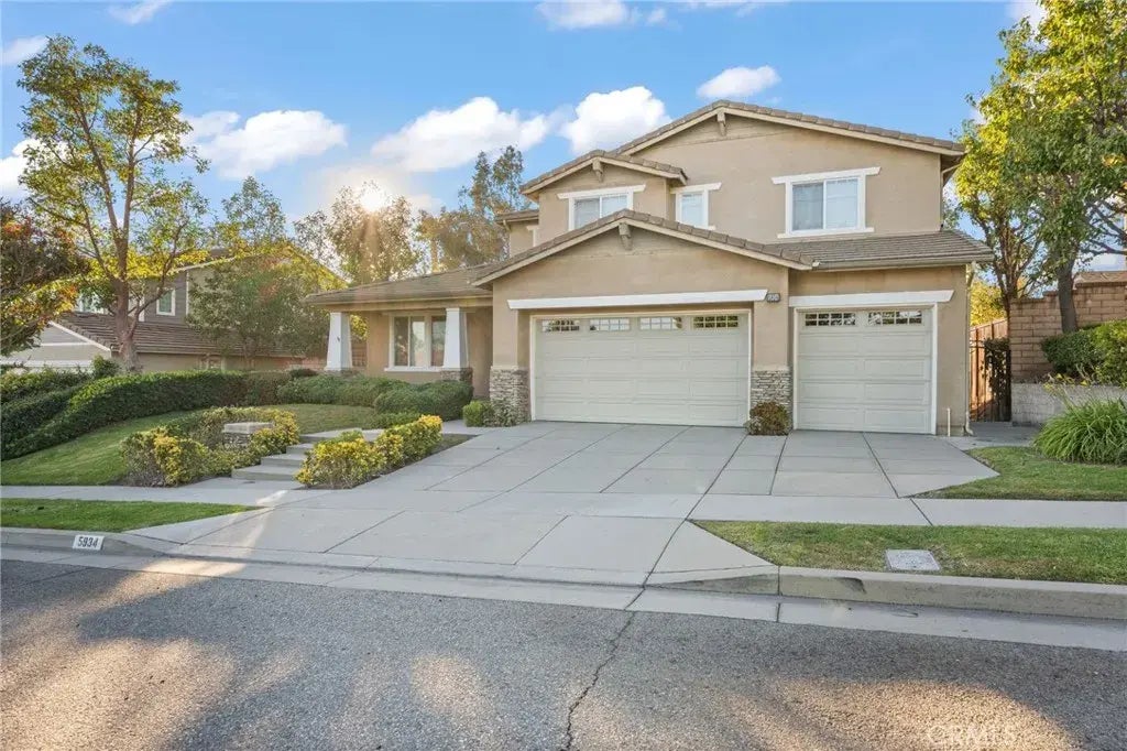 Welcome to this exquisite home, where timeless style meets modern functionality. Designed with impressive attention to detail, this property features soaring high ceilings and warm maple-colored cabinetry throughout, creating an inviting and sophisticated ambiance. The expansive floor plan includes a formal living and dining room, ideal for entertaining. The gourmet kitchen is a chef's dream, offering ample cabinetry, a center island with a sit-up breakfast bar, sleek black appliances, a traditional built-in oven, and a microwave/convection oven. A butler's pantry adds convenience, while beautiful granite countertops enhance the space's elegance. The kitchen seamlessly flows into the expansive family room, complete with a gas fireplace and custom-built entertainment center, perfect for gathering with loved ones. A spacious downstairs bedroom and bathroom with a step-in shower provide flexibility and accessibility. The thoughtfully designed laundry room includes abundant storage, a utility sink, and convenient side yard access. Continuing upstairs will not disappoint. At the top of the landing, you'll find additional cabinetry, providing extra storage. The primary suite is a true retreat, featuring a generously sized bedroom with a full retreat area and a luxurious ensuite. The ensuite includes two separate vanities, a soaking tub, a separate shower, and a private water closet. The walk-in closet offers dual entry doors and custom closet organizers. Two additional large bedrooms upstairs feature mirrored closet doors and custom organizers, complemented by a well-appointed ba