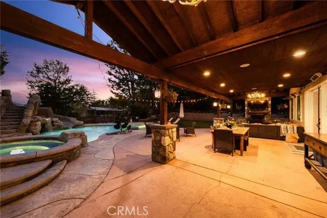 Dreamy Rancho Cucamonga Estate with Equestrian Charm and Luxurious Amenities Step into your very own California dream home nestled in the heart of Rancho Cucamonga. This stunning 4-bedroom, 3-bath estate is a rare gem, offering a serene woodsy vibe paired with modern luxury. Designed for both equestrian enthusiasts and those seeking a tranquil retreat, this home is built around charming stables and surrounded by mature trees that provide privacy and natural beauty. The completely remodeled kitchen is a chefs delight, boasting high-end finishes, sleek countertops, and state-of-the-art appliances, perfect for creating unforgettable meals. The open floor plan flows seamlessly into the living and dining areas, showcasing beautiful new flooring and plush carpet that add warmth and elegance throughout. Outside, the amenities continue to impress. Take a dip in the rock-side pool, or entertain year-round on the finished and expanded outdoor patio, featuring built-in heaters, a fireplace, fire pit, TVs, and a custom BBQ area. The property also offers paid-off solar panels, RV parking, a basketball court in the driveway, and a 3-car garage, making it both functional and luxurious. The finished backyard is an entertainers paradise, perfect for hosting family and friends. Within the private community, residents enjoy access to gazebos, BBQ areas for private gatherings, a pickleball court, and tennis courts, ensuring endless recreation and relaxation opportunities. With meticulous landscaping, a well-maintained front yard, and majestic mature trees, this property is as inviting as it is