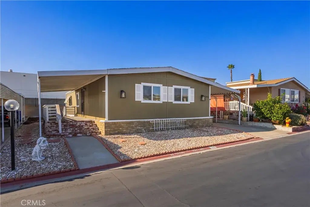 THIS IS A NEWLY REMODELED luxury mobile home in the Rancho Ontario Park. Very open floor-plan with exquisite endless details throughout. This home is a perfect blend of comfort and style, offering a peaceful oasis for those looking to enjoy the best of mobile home living in a vibrant 55 and up community. It features 2 bedroom, 2 baths plus large living room with beamed ceiling and fireplace. New plumbing, new tankless water heater, recesses lighting, new double pane windows, new painted, new laminate wood flooring, new modern lighting & fixtures throughout. Completely brand new bathrooms. Gourmet kitchen w/ quartz counter top, stainless steel appliances and large center Ireland. Washer and gas dryer hook ups in the property. The park offers, heated jacuzzies, pool, remodeled clubhouse, bocci ball and pickle ball courts, with 2 dog parks. JUST LIKE A BRAND NEW HOUSE. ABSOLUTELY GORGEOUS!