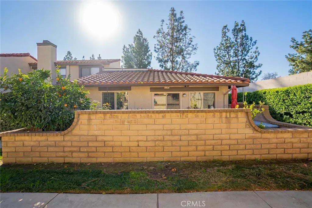 Welcome to this beautiful condo centrally located to the 210, 10 and 15 freeways, shopping and restaurants. This home is an end unit and SINGLE story! Location is very private. Home is very well kept and clean; has newer windows and shutters; a two car attached garage with access into your private patio; Large master bedroom with a private side yard access. Gorgeous patio with an orange tree! The community has many amenities including 3 pools, 3 spas, tennis court and pickle ball court; Beautiful landscaped grounds.