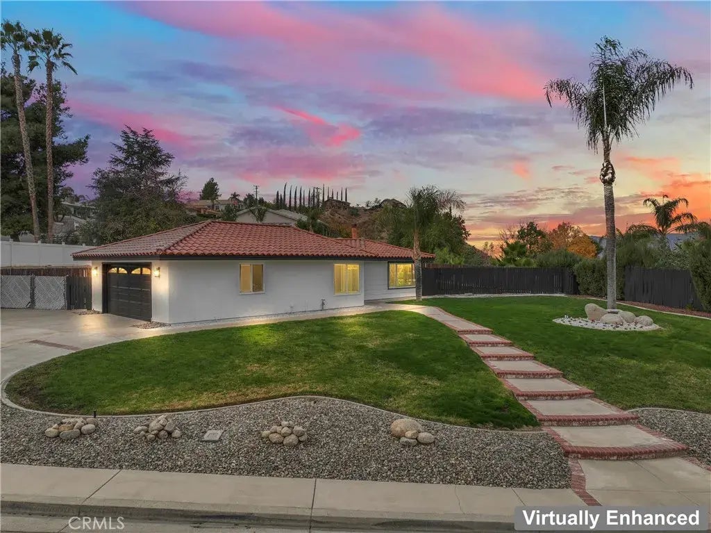WOW Take a look at this Spanish Style Home in a nice neighborhood in the city of Hemet with Spectacular Views of the Valley and the orchards trees. As you approach to the home you will be welcoming with an inviting porch. Then turn the key and enter to a big family room and a formal dining room. The Gorgeous Kitchen is the centerpiece of the home with quartz countertops and the Quartz splash back give a sense of elegance. The Home boost 1,654 sq ft plus extra sq ft with the enclosed covered patio, that can easily be use as a hobby room, exercise room, office or a bonus room. This home offers 3 spacious bedrooms with a huge walking closed in the master suite. A beautiful on suite master bath with walking shower continuing the elegance as the kitchen with double vanity. Step into your private back yard and enjoy the above ground Jacuzzi to relax on your free days. Enjoy the outdoor to your best overlooking at the foothills and trails nearby. There is two good size sheds to store your tools. RV parking and extra wide driveway for all your vehicles. If you are looking for comfort living this is it. Come and preview this home before is too late.