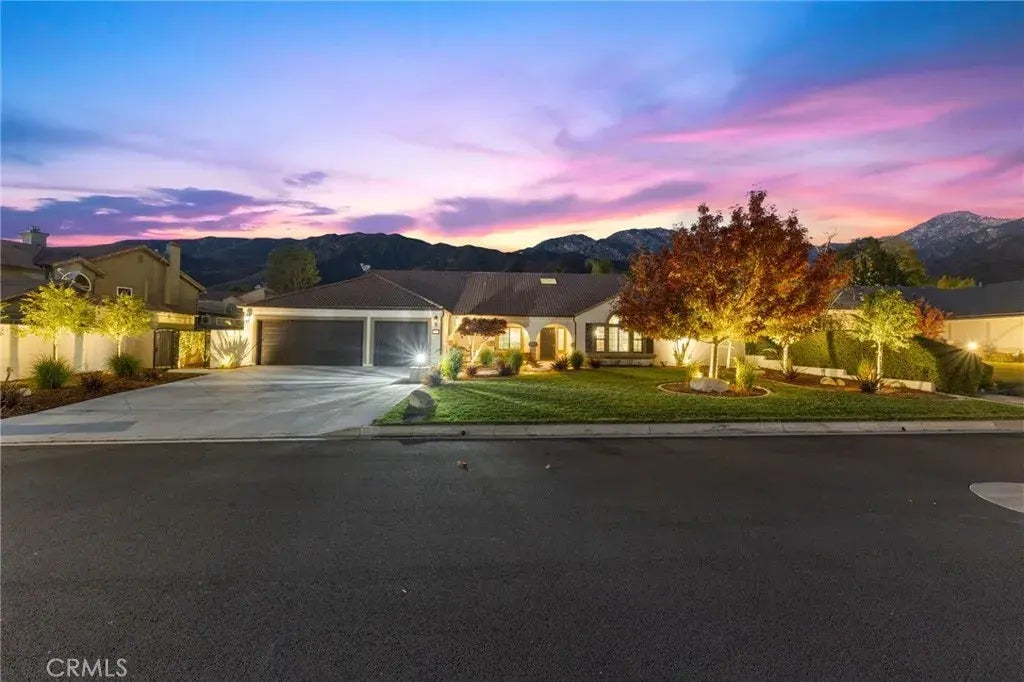 Enjoy a private retreat with an unobstructed and stunning backdrop of the San Gabriel mountains. This beautifully renovated one-story home sits on a quiet street in San Antonio Heights. As you approach this smooth stucco home, you will notice a beautifully landscaped front yard which features a new concrete driveway and porch. As you enter this home, you will find elegant engineered hardwood floors, designer interior paint, vaulted ceilings, crown molding, recessed lighting, and plantation shutters. The spacious kitchen has been upgraded with travertine flooring, and also has a granite countertop and a six burner stove, stainless steel appliances, and white shaker cabinets. The oversized primary bedroom features a recessed tray ceiling, a large bathtub, a walk-in closet, and beautiful wood cabinetry. The home also has some new dual pane Anderson windows and an upgraded indoor plumbing system. French doors in the family room open up to a magnificent and recently modernized backyard that showcases views of the mountains. Beautiful pavers sweep throughout the backyard and surround a saltwater pool that features Pebble Tech coating, a Baja shelf, a spa, new LED lighting, and remote-controlled pool equipment. Picture yourself exiting the pool and warming yourself by the outdoor gas fire pit. A large, covered patio area makes it ideal for entertaining. You will also enjoy the professionally designed, drought resistant low maintenance landscaping with partial underground irrigation and decomposed granite along with a wide variety of dwarf fruit trees. During the evenings, you will