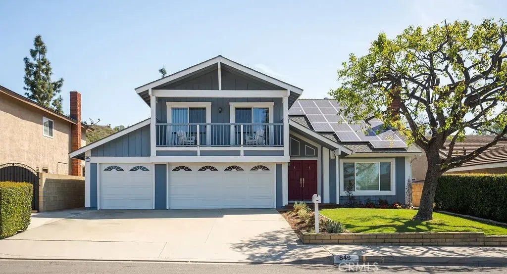 Welcome to 846 Bridle Drive, an exceptional residence located in the sought-after community of Diamond Bar. This elegantly designed 4 bedroom/ 3 bath pool home located on a cul-de-sac boasts 2,324 square feet of living space, blending modern amenities with classic charm. Upon entry, you'll notice the freshly painted interior and beautiful wood flooring that create a warm and welcoming atmosphere. The home includes four spacious bedrooms and three well-appointed bathrooms, ensuring comfort and privacy for everyone. The first floor features a bedroom and bathroom with a shower, along with a living room, dining room, and family room that provide direct access to the three-car garage. The kitchen impresses with its stylish Caesarstone countertops and stainless steel appliances, perfect for culinary creations. On the second floor, you'll find a versatile bonus room with a balcony, offering limitless potential for personalization. Whether you dream of a peaceful retreat or a lively creative studio, this room is ready to become a treasured part of your home. Additionally, there are three more bedrooms and two bathrooms, including a primary bedroom with ensuite. The outdoor area is a true haven, showcasing a gated sparkling pool for endless enjoyment and relaxation. The patio, adorned with lovely pavers, complements the yard which features turf and colorful, low-maintenance landscaping. Spanning 7,399 square feet, the property provides ample space for outdoor activities and gatherings. Energy efficiency is a standout feature, with solar panels installed to help reduce utility costs