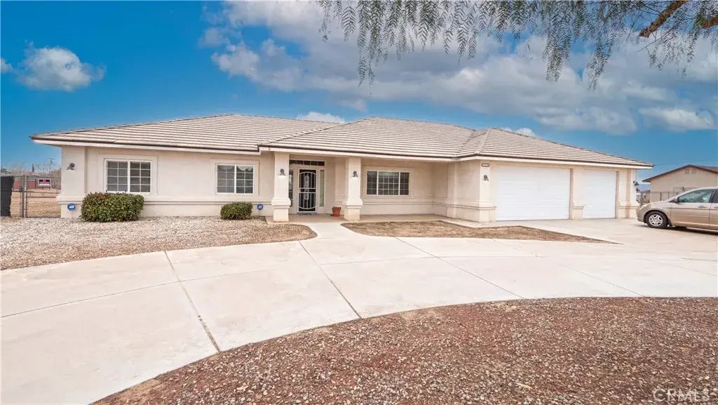 Welcome to 15318 Smoke Tree St, a stunning custom-built home in Hesperia, CA, offering over 2,500 sq ft of luxurious living space on a sprawling 1.17-acre lot. This beautifully designed home features 4 spacious bedrooms, 2 full bathrooms, and a fully finished 3-car garage, perfect for all your storage needs. The open floor plan is ideal for entertaining, with soaring 9-foot ceilings and high-end finishes throughout, including upgraded carpeting and a striking new stone surround on the living room fireplace. Every room is equipped with ceiling fans, and the ducted Mastercool evaporative system ensures you'll stay cool and comfortable all summer long. Stainless steal appliances, recessed lighting, fresh paint and so much more. With over an acre of land, theres plenty of space for your all your cars, toys, RV, or any outdoor projects you may have. Comes with shipping container which is great for storage. This home offers the perfect blend of style, comfort, and functionalityit's truly a must-see!