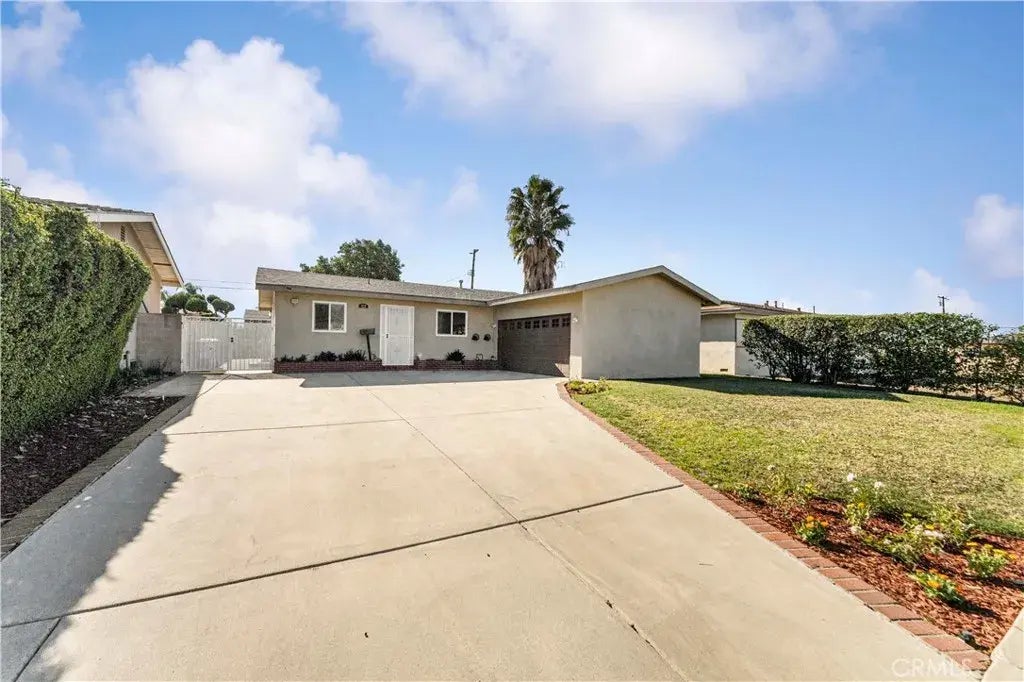 This delightful single-story home blends simplicity and style with a light-colored facade, manicured front yard, and ample parking on a concrete driveway. The two-car garage and white front door enhance its curb appeal. Inside, the bright living space features a cozy fireplace with a white mantle, new flooring, new paint, newer windows, newer kitchen, and natural light streaming through large windows and sliding glass doors. The galley-style kitchen offers white cabinetry, granite countertops, stainless-steel appliances, and a cozy breakfast nook. With three bedrooms and 1.75 baths, the master bedroom includes two closets and a convenient one-third bath, while the additional spacious bedrooms share a full bathroom. The backyard is a private retreat with a full size electric SunSetter Awning, providing cool shade to the concrete patio area in the summer. In addition, a sparkling pebble tech pool, and space for lounging or diningperfect for relaxation and entertaining. This home offers a seamless blend of comfort and functionality. Dont miss the opportunity to make this wonderful home your ownit's definitely a must-see!