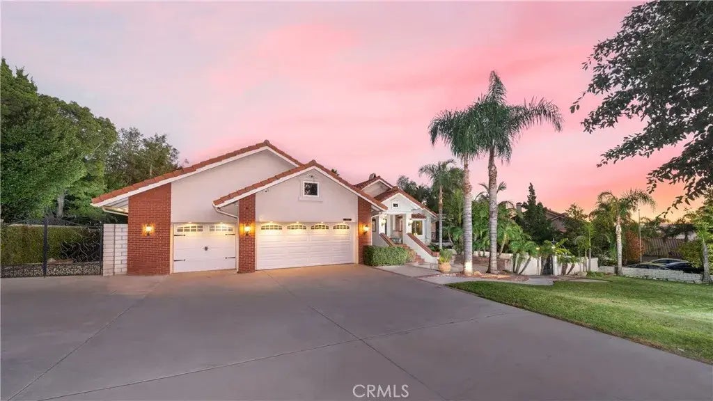 Nestled on a beautifully landscaped half-acre lot, this stunning home offers an impressive 4,300 sq. ft. of luxurious living space. Designed for both elegance and functionality. Plus, enjoy the added bonus of an attached guesthouse, perfect for hosting visitors or offering private accommodations. Upon arrival, you are welcomed by a charming covered front porch with double glass entry doors, setting the tone for the beauty within. The elegant foyer features soaring high ceilings, modern custom lighting, travertine tile flooring, and crown molding throughout. Plantation shutters, recessed lighting, and dual-paned windows enhance the home's sophisticated yet cozy atmosphere. The spacious formal living room includes a two-sided fireplace, adding warmth and character, while the custom French doors in the dining room invite delightful cross-breezes. The updated gourmet kitchen is a chef's dream, complete with Viking Professional appliances, a wine chiller, quartz countertops with a full backsplash, and abundant cabinet space. French doors in the breakfast nook open to views of the backyard oasis, seamlessly connecting indoor and outdoor living. Adjacent to the kitchen, the inviting family room features another two-sided fireplace, perfect for cozy gatherings. The expansive primary suite is a true retreat, offering French doors leading to the backyard, dual closets, and a raised hearth brick fireplace. The remodeled en-suite bathroom includes a free-standing bathtub, a frameless glass walk-in shower, dual sinks, and custom tile work. A downstairs casita with a private entrance pro