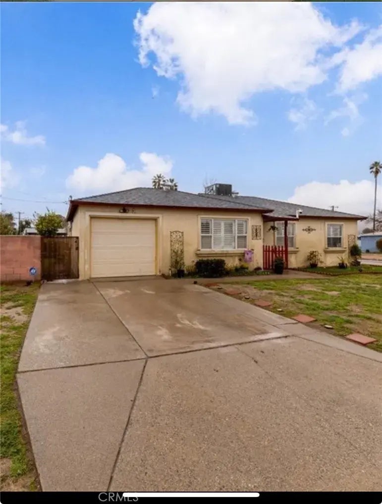 This charming single story home offers three bedrooms and one and half baths, situated in North San Bernardino on a spacious corner lot. Enter into the cozy living room with window shutters, a soothing color scheme and a dining area with tile flooring. The quaint kitchen is the heart of the home with plenty of cabinets. There is a hall bath with a shower and tub. The hallway boasts additional storage and tile floor. The shutters carry into the primary bedroom, where you can relax under a breezy ceiling fan and get ready for your day in the en suite bathroom with shower. There are two spacious secondary bedrooms with window shutters and ceiling fans. The home has a newer AC unit and newer electrical throughout. The outdoor space includes a wood covered patio, perfect for entertaining or relaxing followed by a spacious rear yard with endless possibilities and RV access. Enjoy the mountain view and beautiful sunsets with easy access to 210 freeway. A perfect blend of wonderful!