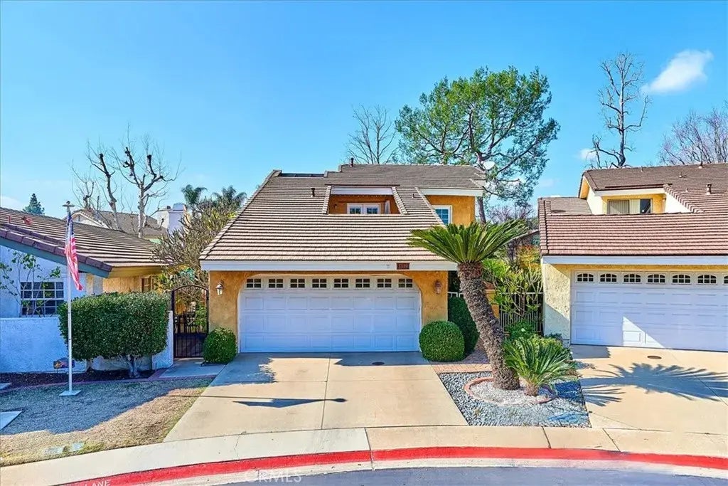 Welcome to this stunning 4-Bedroom, 3-Bathroom Home in the Upland North Hills community on a cul-de-sac! As you walk up you are welcomed by a private and inviting front porch. This home features a bedroom on the first level that is currently being used as an office. First level bathroom is in the hallway. French doors that lead to a peaceful atrium with a fountain. A large living room that is bright with very high ceilings and a slider to the back patio. Kitchen with granite counters, bar stool seating that is open to the family room. The dining room is next to the kitchen. The family room is cozy with a fireplace and a slider to the back patio. Upstairs, the primary bedroom is large with high ceilings and a walk-in closet. The primary bathroom has a double sink vanity and beautifully renovated shower with glass enclosure. Two additional bedrooms are generously sized, with one of the bedrooms having an additional room that can be used as a tv room/ office/ sitting room or bedroom plus French doors to an amazing upper patio deck area! A full bathroom with custom tile detail on the upper level. Additional features include Luxury vinyl plank flooring, tile flooring, upgraded windows, crown molding, recessed lighting, central air and heat. 2 car attached garage with laundry hookups and cabinet uppers for storage. Outside, you'll find a large patio area that is ideal for outdoor dining and entertainment, with plenty of room for gardening or play. The green belt in the community is lush with walking paths to the community pool and spa! Conveniently located to a grocery store, res