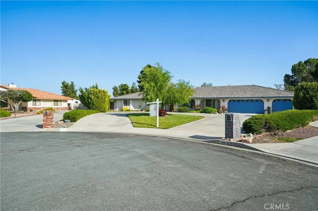 Elegant & Spacious Home in Sunset Hills, Apple Valley! Tucked away in a peaceful cul-de-sac, this stunning home offers four generously sized bedrooms and three full bathrooms, including a secondary master suite. Enjoy the benefits of PAID OFF solar panels with annual Edison incentivesthe past 2-years rebate was $607! The interior features a formal living and dining area with expansive windows, while the separate family room showcases soaring vaulted ceilings, a striking real rock fireplace, and a charming wooden mantel. The luxurious primary bathroom is a true retreat, complete with a two-person jetted tub under a skylight, a spacious separate shower, and an oversized walk-in closet. A well-appointed laundry room offers ample storage, folding counters, and a skylight for natural brightness. This home provides abundant parking with a three-car attached garage and a circular driveway. The beautifully landscaped front yard boasts lush grass and vibrant plants, while the low-maintenance backyard features decorative rock, a covered patio, and a Rachio smart sprinkler system for effortless water efficiency. Enclosed by block walls, the property ensures both privacy and tranquility. Dont miss this incredible opportunityschedule your private tour today!