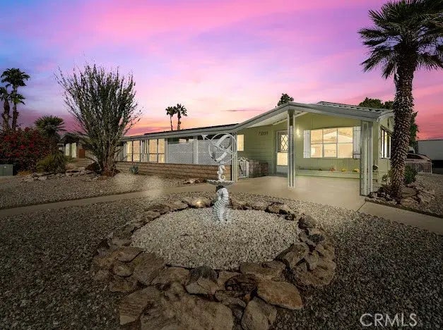 Welcome home to 73330 Linda Circle! PRICED TO SELL!. This charming residence features 2 bedrooms and 2 bathrooms, highlighted by a bright and spacious open floor plan with large windows and recessed lighting. Located on a corner lot, the home offers stunning mountain views and is move-in ready. The remodeled kitchen is equipped with brand-new stainless-steel appliances, granite countertops, an island, and ample cabinet space for additional storage. The bathrooms in both rooms have been delightfully updated, making them a wonderful part of the space! The home has been remodeled with vinyl flooring, fresh paint, new vanities, and stylish light fixtures. The sunroom opens up a world of possibilities, effortlessly adapting to become a versatile space that can serve many purposes. For energy efficiency, solar panels have been installed and are fully paid off. The home is on a permanent foundation, making financing very easy, ask me about it! Palm Desert Greens Country Club is one of the most desirable 55+ communities, situated in the heart of the desert and close to numerous golf courses, parks, hiking trails, restaurants, shops, and casinos. You own the land, and the low monthly HOA fee includes free golf, cable TV, internet, trash removal, 24/7 guard gate security, and much more. This is truly one of the best buys in the valley!
