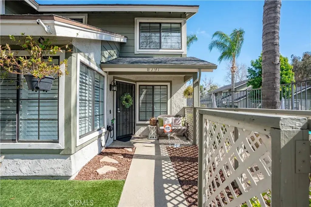 YOU'RE in LUCK! Back on Market at no fault to Seller. Turnkey End-Unit Townhome in Rancho Cucamonga Open Floor Plan & Prime Location! Welcome to this gorgeous, well-kept end-unit townhome in the heart of Rancho Cucamonga! This turnkey property features two spacious bedrooms and one-and-a-half baths, providing the perfect blend of comfort and modern upgrades. The front courtyard, complete with an ample seating area and beautiful landscaping, welcomes you! Step inside to find laminate flooring and plush carpet throughout, complemented by recessed lighting and elegant window shutters, adding a touch of sophistication. The open floor plan seamlessly connects the kitchen to the living room, creating a bright and inviting space for entertaining or relaxing. The stylish kitchen boasts quartz countertops, stainless steel appliances, a walk-in pantry, and a bar-top counterperfect for hosting and everyday living. Designed for todays lifestyle, the home includes a built-in work-from-home or learn-from-home desk with electrical. The primary bedroom features dual master closets, an en-suite vanity, and a full bathroom, creating a private retreat. Enjoy the fresh air on your balcony, complete with elegant shutters. Additional highlights include an electronic thermostat, wired alarm system with a video doorbell, and a two-car garage with a durable epoxy floor. Prime Location! This home is conveniently situated next to a community pool, offering easy access to relax and enjoy warm California days just steps from your front door. The community offers a total of 2 pools and spas, and a Dog