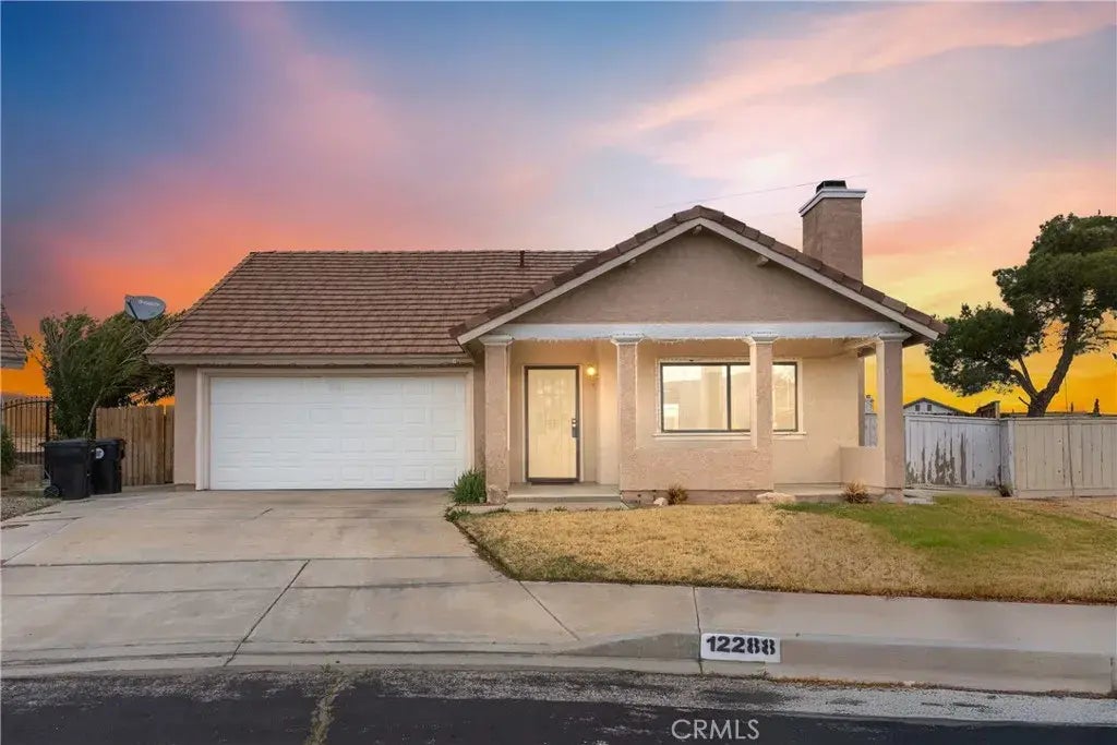 Welcome to 12288 Stonegate Circle, a beautiful single-family residence located in the sought-after West Bear Valley area of Victorville. This well-maintained 3-bedroom, 2-bathroom home offers 1,464 square feet of living space and sits on a spacious 0.31-acre lot, providing a comfortable and private setting for you and your family. Upon entry, you'll be greeted by an inviting open floor plan featuring vaulted ceilings, which create a bright and airy atmosphere throughout the home. The large living room is perfect for entertaining, complete with a cozy fireplace to enjoy during cooler months. The kitchen offers tile countertops, ample cabinetry, and modern appliances, including a dishwasher and range/oven, making meal preparation a breeze. The dining area is conveniently located adjacent to the kitchen, ideal for family meals. The master suite is a true retreat, featuring a generous walk-in closet and an en-suite bathroom with dual sinks and a glass-enclosed shower. Two additional well-sized bedrooms share a full bathroom, ideal for family or guests. Enjoy the Southern California lifestyle with a large, fully fenced backyard, featuring a concrete patio that provides plenty of space for outdoor dining, entertaining, or simply relaxing. The front yard is beautifully landscaped, enhancing the home's curb appeal. Additional features include ceiling fans throughout, air conditioning, and an attached 2-car garage for convenient parking and storage. The home is located close to major highways, including the I-15 freeway, providing easy access for commuters. Located near schools, sho