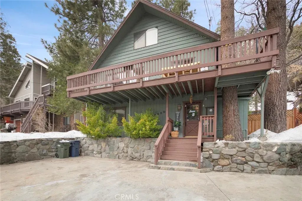**ANOTHER AMAZING OPPORTUNITY**Wow, what a stunning home! This 3-story, 4-bedroom, 2-bath home has so much to offer. With a spacious 10,700 sqft lot, the main house is cozy and beautifully upgraded, featuring a foyer with tile flooring, a large bedroom, a storage area for fun outdoor toys and a kitchen that is perfect for entertaining, with its wood floors, large kitchen island, quartz countertops, and tile backsplash. The living room, with its gas and wood fireplace and wood beams, adds to the warmth and charm, while the bedrooms and bathrooms are all well-appointed with thoughtful upgrades. Double pane windows throughout home keeps your home warm during those cold days. But the real bonus? The two tiny homes that provide fantastic income potential. Each tiny home comes with its own bathroom, mini kitchen, and private access to laundry facilities, and they continuously generate rental income from hiking travelers. Seller history shows potential income of $3,500+ per month from these units during peak season is a great perk. The backyard sounds like an oasis, complete with a private jacuzzi, a wraparound deck surrounded by beautiful trees and short walk direct access to the Pacific Crest Trail. Plus, its close to a Mountain High Ski Resort, schools, shopping, and dining making it the perfect blend of serene living and convenience. This home really does sound like a dream. Its definitely one youll want to see in person!
