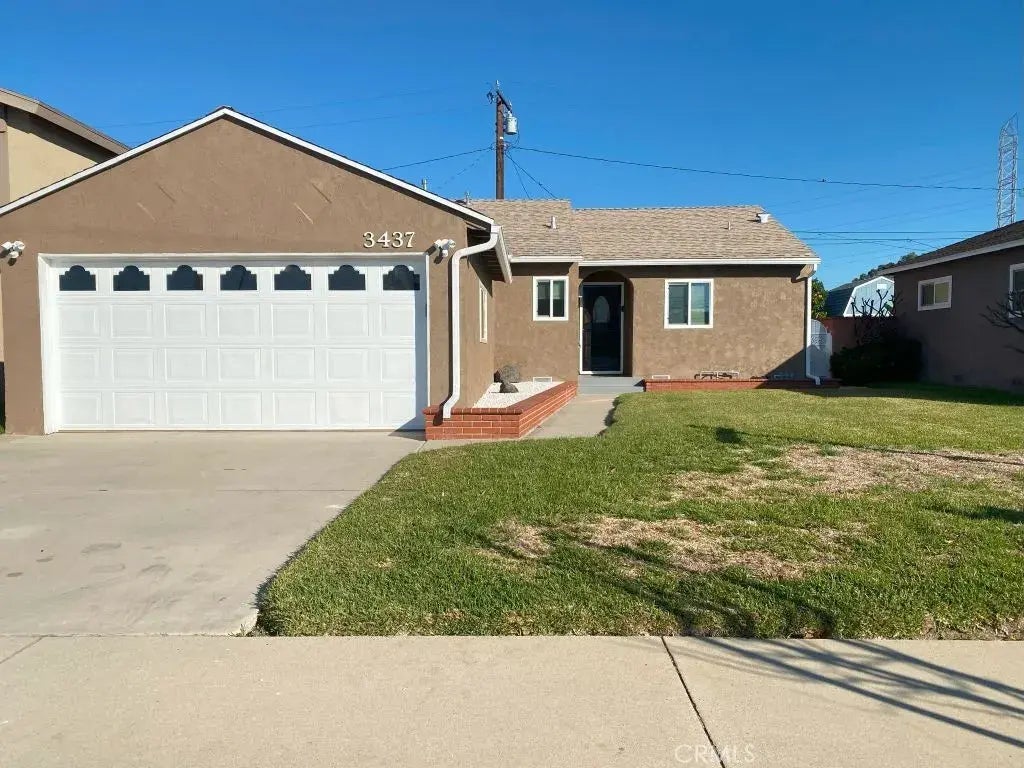 Warm and inviting single-story home with 3 bedrooms, 1 bathroom, living room with dining area, hardwood floors throughout, family room, kitchen, laundry room, central air and heat, 2-car attached garage, covered patio in the backyard with block walls and automatic sprinklers. This home is near a golf course, kruse Dairy, parks, transportation, and shopping. Don't miss out on this wonderful home with awesome potential.