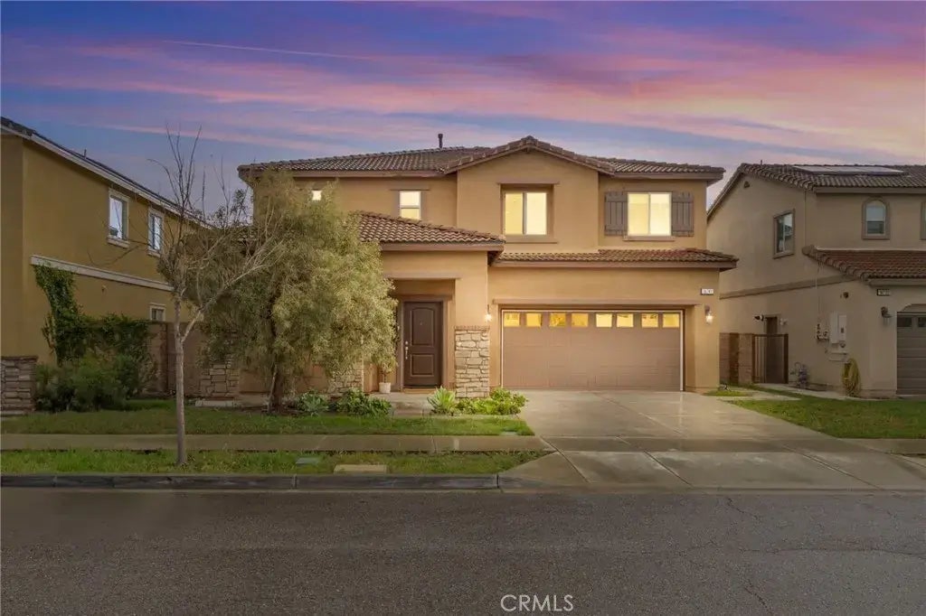 Welcome home to 16741 Buttonwood Lane, Fontana in the highly desirable Bella Strada community. This home presents a generous open-concept layout which features 4 bedrooms, 3 bathrooms and 2,760 sq. ft. of thoughtfully designed living space. There is a multipurpose room with a walk-in closet conveniently located on the main floor. This versatile room offers the ideal blend of functionality. It can serve as a comfortable bedroom, a productive home office or welcoming guest quarters. A well-appointed full bathroom is adjacent to the room on the main floor. The Kitchen's design with sleek granite countertops promotes easy conversation and interaction featuring a large island with a seamless flow into the living area and dining area making it the heart of the home. Walls of windows flood the bright and airy living room with natural light. The living room opens up to the backyard, creating an inviting space for entertaining. The backyard is a cohesive extension of the home, showcasing exquisite stamped concrete. On the upper floor you will discover the oversized primary bedroom showcasing a luxurious ensuite with dual sinks and two large walk-in closets, creating the ultimate haven for rest and relaxation. Two additional bedrooms, both with walk-in closets, are in close proximity to a tasteful full bathroom, ensuring ample space and privacy. A dedicated laundry room adds ease and efficiency to streamline daily routines. The loft on the upper floor has various uses such as an office, relaxation area or a play area. A new desalting and flush tankless water heater was installed on 0