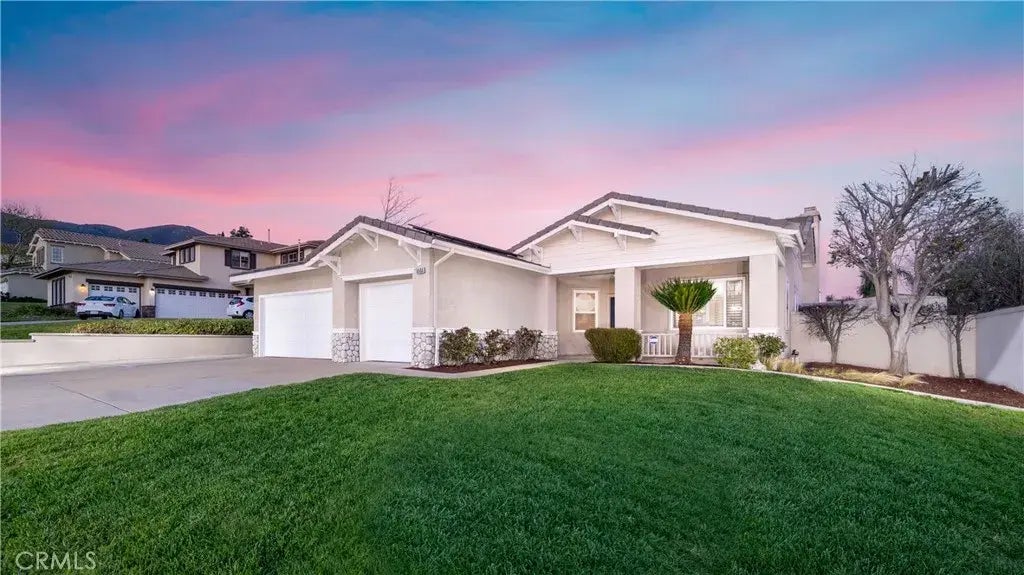 This beautifully maintained single-story home features a spacious 3-car garage and convenient RV parking. The freshly painted exterior makes a stunning first impression, and the leaded glass door entry welcomes you into over 2,000 square feet of elegant living space. A versatile fourth room, with double doors, offers the ideal setting for a 4th bedroom, office, or library, giving you the flexibility to create the perfect space for your needs. Inside, you'll find a formal living room and dining area with soaring 10-foot ceilings that add an air of grandeur. The home is meticulously designed with Berber carpet, laminate flooring, crown molding, and 6-inch baseboards, creating a cohesive and sophisticated atmosphere throughout. The open-concept kitchen is the heart of the home, featuring a center island with quartz countertops and a beautiful mosaic tile backsplash. Its equipped with modern white cabinetry, a powerful range hood, and premium stainless steel appliances, including a Thermador 5-burner cooktop, Bosch microwave, oven, and dishwasher. Pendant lighting above the island adds a touch of contemporary style. The kitchen flows seamlessly into the family room, complete with a cozy gas fireplace, making it ideal for both daily living and entertaining. Double doors lead to the spacious primary bedroom, which boasts a ceiling fan and high ceilings with a backyard view. The primary bath offers dual sinks, a soaking tub, a separate walk-in shower, and finishes that create a spa-like retreat. The two additional generously sized bedrooms are thoughtfully designed with ceiling fa