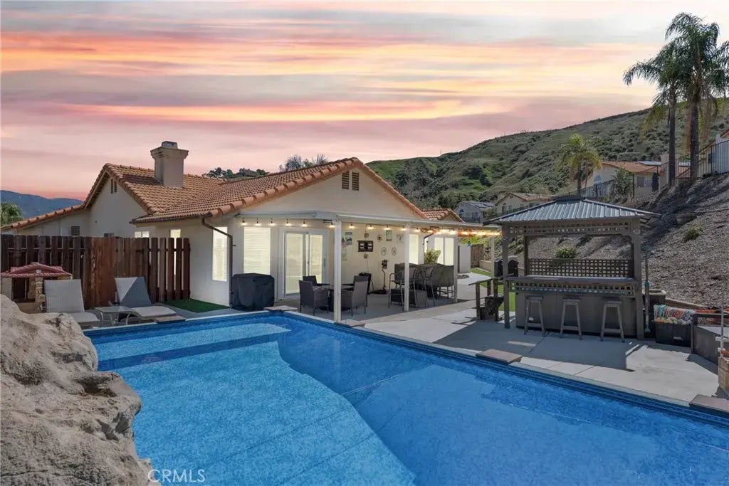 Welcome to this beautifully updated and remodeled single-story home in the Ridgeline hillside community. The spacious floor plan offers a living room and dining area with vaulted ceilings, creating an open and airy atmosphere. The remodeled kitchen features LED lighting, new stainless steel appliances, and a generous breakfast area overlooking the backyard. The family room is a cozy retreat with a fireplace and skylights that bring in abundant natural light. The primary suite includes a fireplace and a versatile sitting area, perfect for a home gym or office. The en suite bathroom boasts custom wood sliding barn doors, dual vanities, a separate tub and shower, and a walk-in closet. Two additional bedrooms, a hall bath, a guest bath and an indoor laundry room complete the interior. Step outside to enjoy the professionally landscaped front yard with drought-tolerant landscaping and a welcoming porch with breathtaking mountain views. The park-like backyard is an entertainers paradise, featuring an Alumawood-covered patio, artificial turf, an in-ground vinyl-lined pool, and an above-ground spa. Additional amenities include an electric solar panel system, exterior lighting, a backup generator system, and ample parking. Conveniently located near Cal State San Bernardino, with easy access to the 210 and 215 freeways, and close to major employment centers. This move-in-ready home is waiting for you dont miss out!**VA ASSUMABLE LOAN** CHECK SUPPLEMENTS