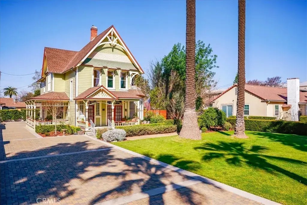 Stunning 3,226 sq. ft. N. Ontario Victorian home built in 1887, has been fully updated and restored and has an elevator! This Gorgeous property was home to the Herbert Oakley family, who were prominent orange growers in the city. Purchased n the 1940's by the original Logan's candy founders, it has remained in the family since. From the expansive lawns, tall palms, manicured hedges and long paver drive, this property is the image of elegance. The steeply gabled roof, refreshing porches, clapboard and shingled siding, ornately carved and painted rafters, posts and railings, showcase this sophisticated "Painted Lady" as she displays her proud heritage. The formal parlor's gleaming hardwood floors, divided light windows and doors, grand wood staircase, and exquisite golden fireplace surround are sure to impress. The gracious dining room is flanked by large paneled pocket doors, and features a convenient pass thru window to the kitchen. The adjacent family room boasts a Victorian style redwood fireplace and wall of windows and doors. The library showcases a gas fireplace, floor to ceiling alder wood bookcases, and flows to the unbelievable chef's kitchen, which was updated in the farmhouse style and has custom cabinetry, vast granite prep surfaces, stainless appliances including Thermador ovens and custom oversized alder wood vent hood. The lovely half bath with Carrera marble flooring, pedestal sink and crystal chandelier, completes the main level. Both the elevator and staircase lead to the second floor, which features three large bedrooms and two full baths, including the su
