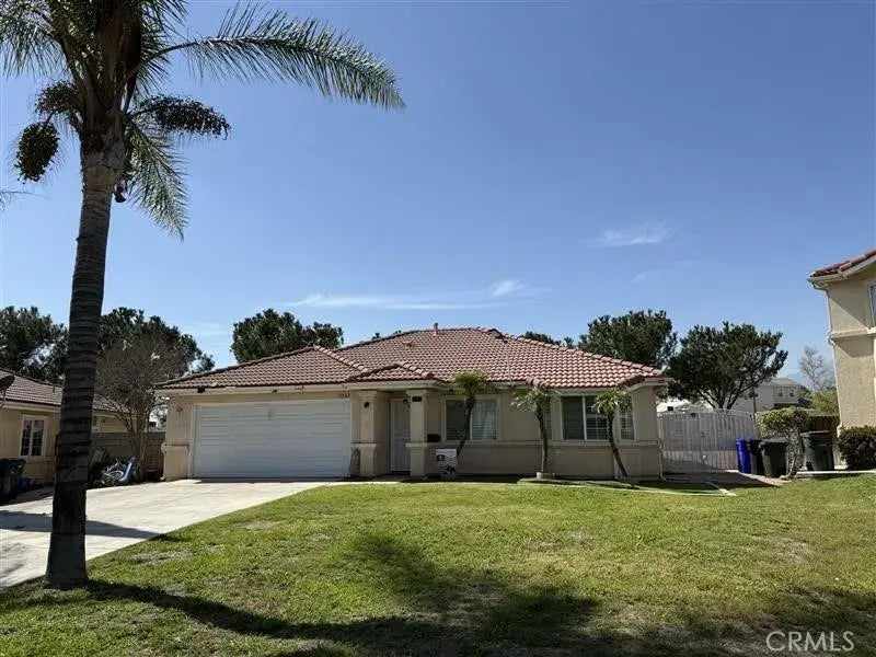 Nestled on a Cul de sac, this delightful home offers a thoughtful layout designed to maximize comfort and privacy. The exterior of the home is beautifully adorned with Spanish tiles on the roof. The central common living area serves as a hub, flanked by two bedrooms on each side, ensuring a serene and private living experience. The left wing features a convenient Jack and Jill-style bathroom, adding to the home's practical appeal. The expansive, paved backyard presents a versatile space, ideal for storing recreational vehicles or offering ample potential for future home expansions. The outdoor area is further enhanced by a long patio, perfect for outdoor entertaining and relaxation. Additionally, the property includes storage sheds, providing ample space for tools, equipment, and personal belongings. This property combines charm, functionality, and opportunity, making it an attractive choice.
